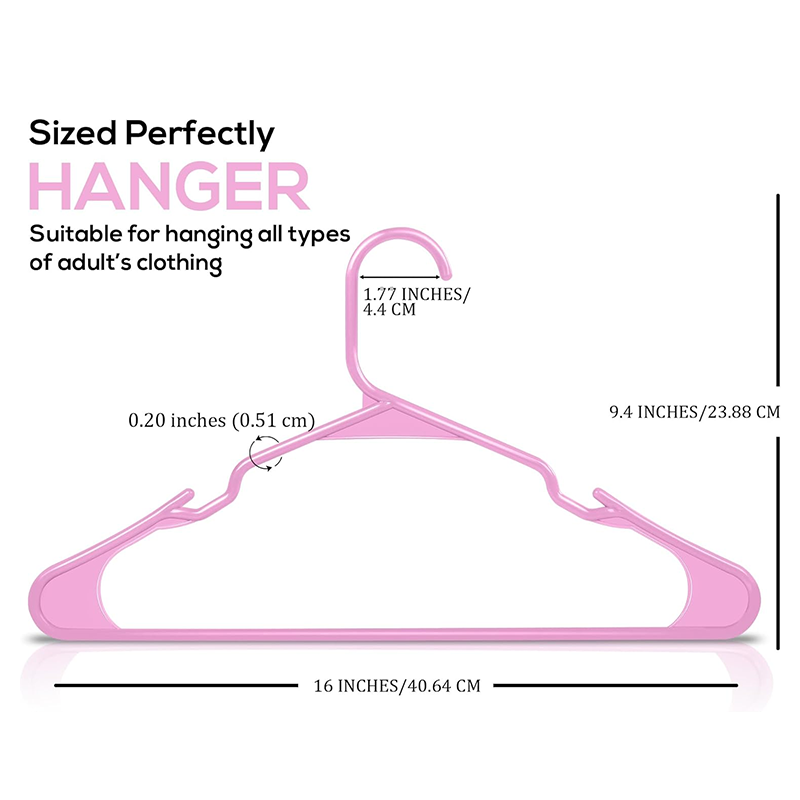 Plastic Hangers Set - A pack of plastic hangers designed for closet organization and storage, each measuring 16 x 9.4 x 0.2 inches to fit standard closet spaces.