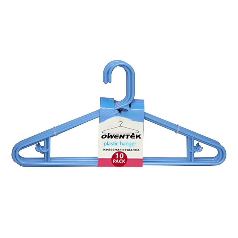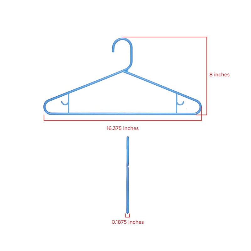 This 10-pack of blue plastic clothes hangers is an ideal choice for everyday clothing storage. Made of durable plastic, they feature a simple and sleek design with a fresh blue color.