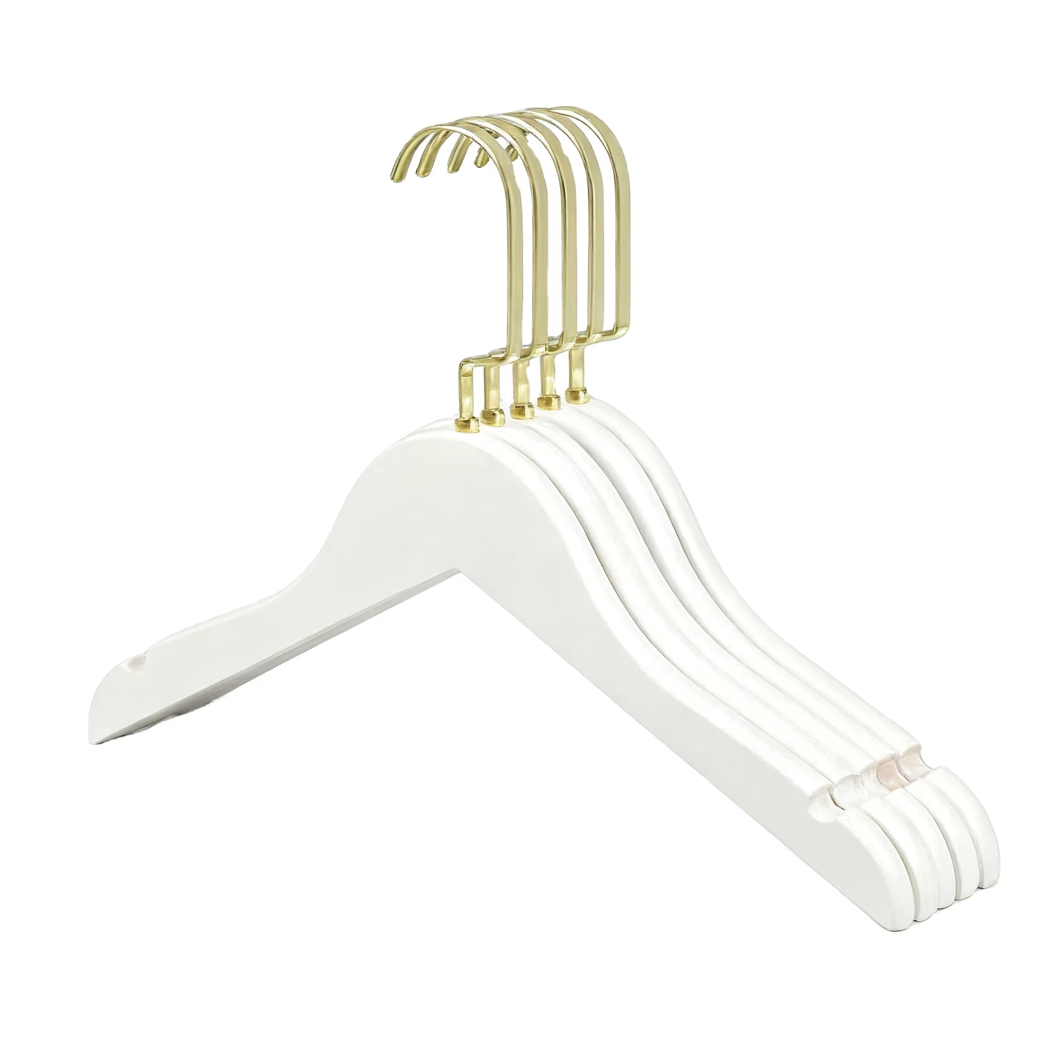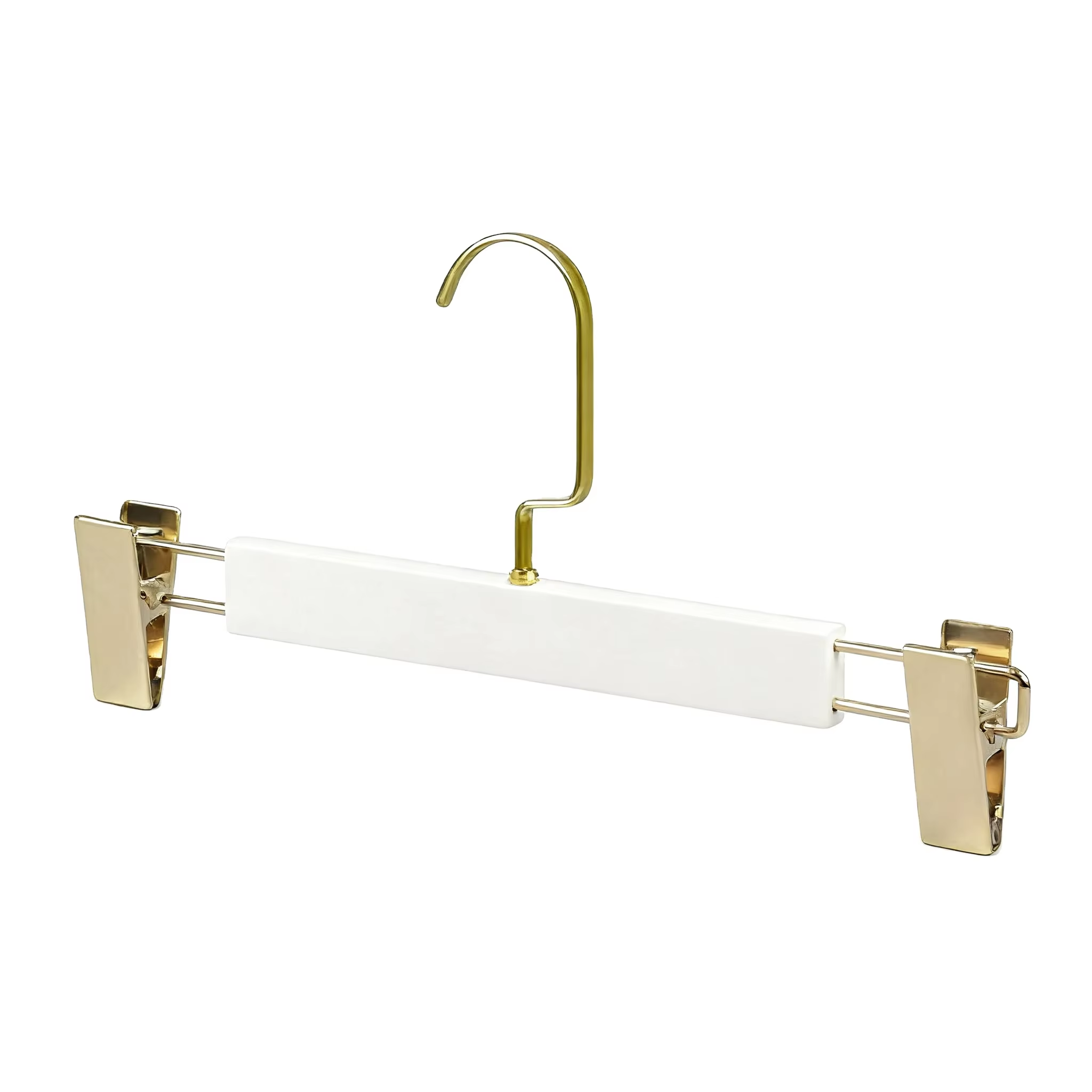 This hanger is exquisitely made with a combination of wooden and iron materials, adorned with an elegant white gold finish that blends texture and aesthetics. It not only meets daily clothing hanging needs but also adds a refined touch to your wardrobe organization. Equipped with a practical hanging rod, it can flexibly hold various items such as coats, trousers, and regular tops. The hanging rod offers stable load-bearing capacity and is resistant to deformation, easily handling scenarios like hanging thick outerwear or multiple layers of clothing.