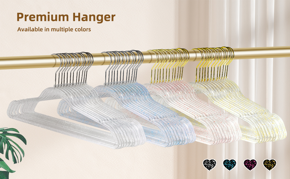 These clear plastic hangers are a fantastic choice for organizing your wardrobe. They boast a transparent design that keeps your clothing display sleek and unobtrusive, seamlessly blending into any closet style.