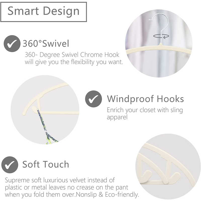 Special Feature :Premium Velvet Surface Non-slip, Tie Bar, Space Saving Slim Design, Durable Structure with 360° Swivel Hook, Protective for Clothing